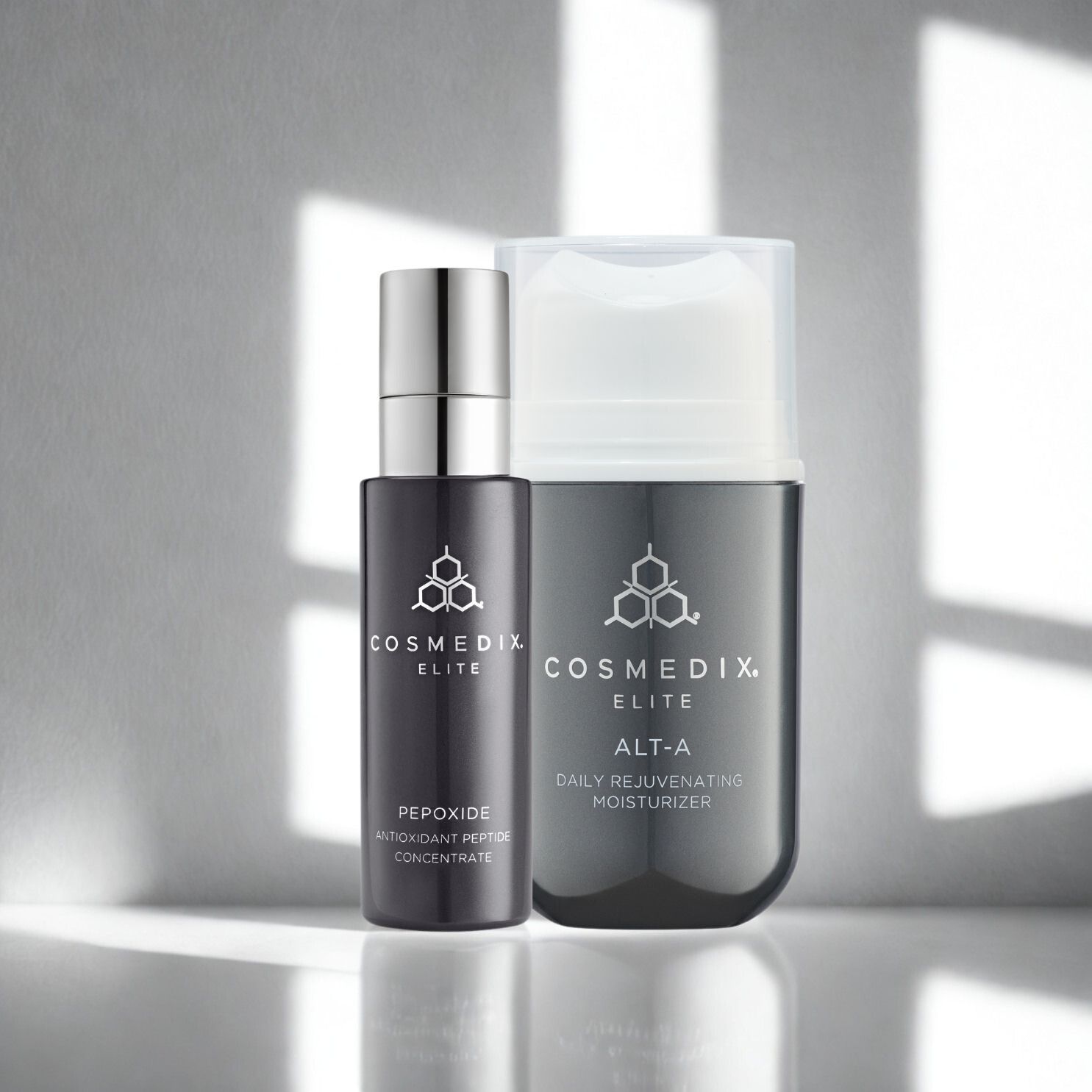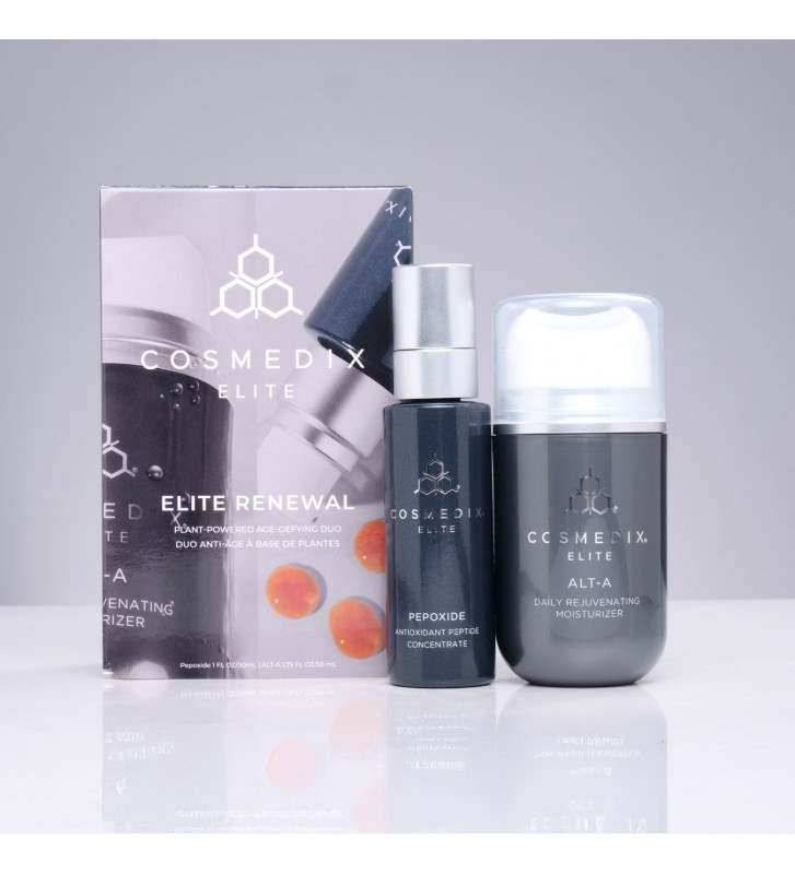 Poznaj duet, który kompleksowo odpowiada na potrzeby dojrzałej, odwodnionej i zmęczonej skóry. Zestaw Elite Renewal łączy moc antyoksydacyjnego serum Pepoxide z regenerującym kremem Alt-A, tworząc skuteczną, codzienną kurację przeciwstarzeniową o najwyższej skuteczności.